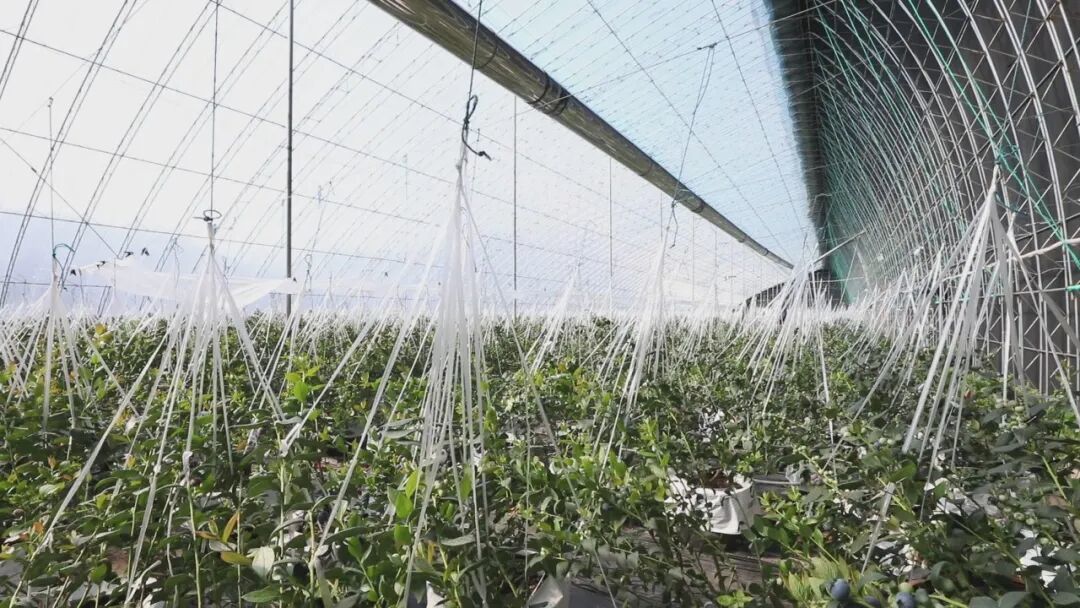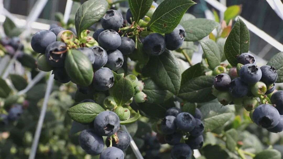 榆林镇蓝莓种植户高刚介绍,这里的蓝莓从 11 月中旬左右就陆续开花、结果,比露地蓝莓的成熟时间早了半年。种植的是 L25 南高系列蓝莓,这个品种花香浓郁、口感佳、果实硬度好,甜度能达到 14 左右。