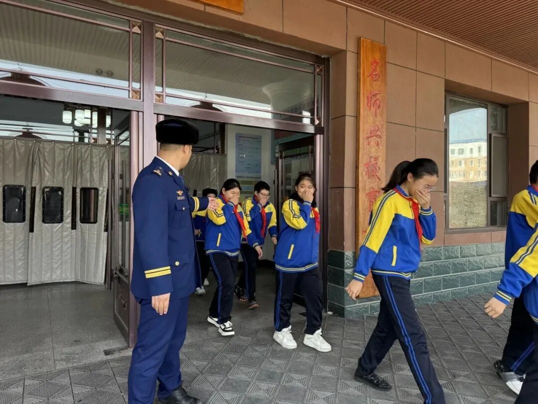 在实操环节,消防员现场演示灭火器“提、拔、握、压”操作口诀与消火栓使用方法,手把手指导师生亲身体验灭火操作;同步组织应急疏散演练,模拟火情警报响起,全体师生在引导下弯腰低姿、捂鼻护口,快速有序撤离至安全区域,切实把理论知识转化为实战能力。