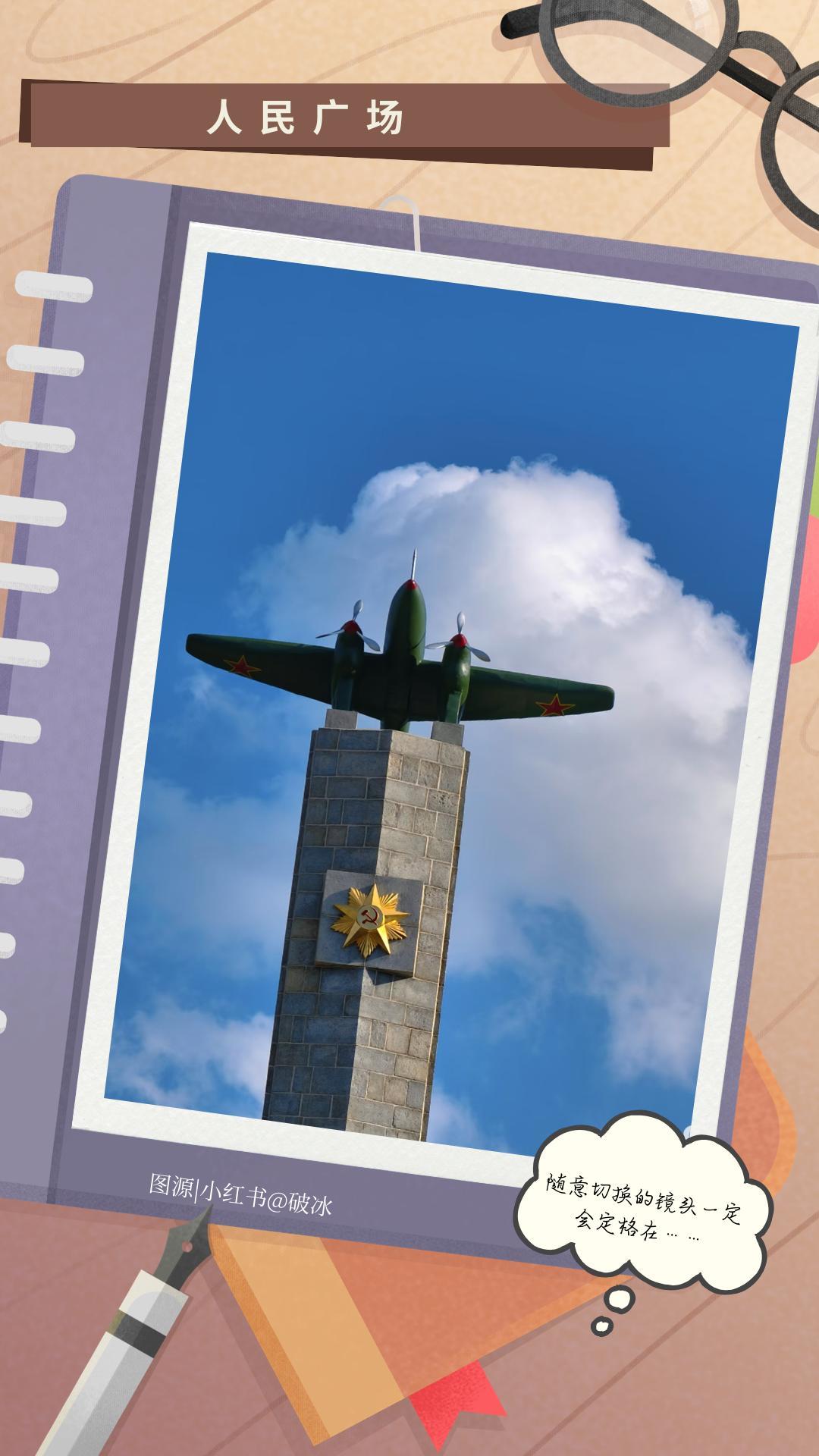 转去人民广场,这里是城市的中心,拍云、拍建筑、拍路人……随意切换的镜头一定会定格在苏联红军烈士纪念塔上,塔身浮雕在阳光下格外清晰。