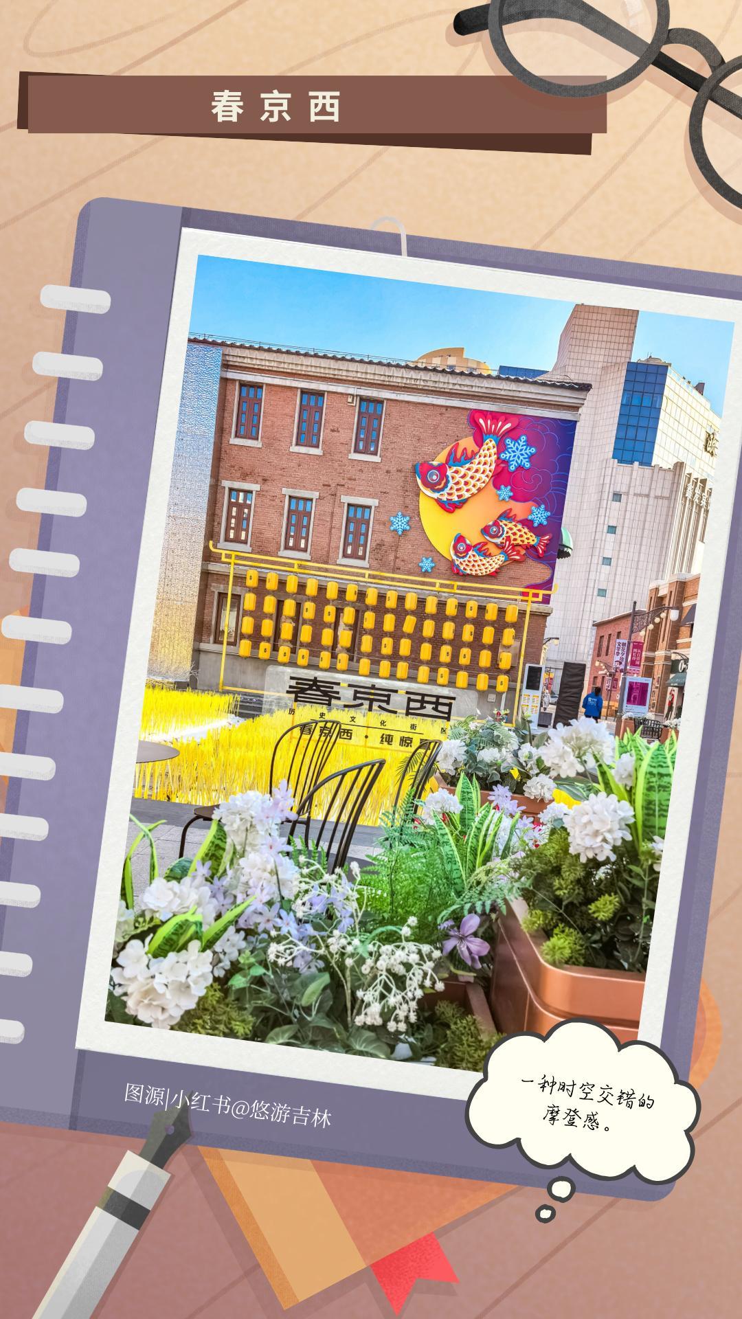 春京西,听名字已经有了滤镜。百年老建筑被创意唤醒,复古的肌理与现代的文艺相融。老砖墙上“开”的花,书店的书香、咖啡的醇香……这份复古与新潮的碰撞,让我发现了长春灵动的一面。