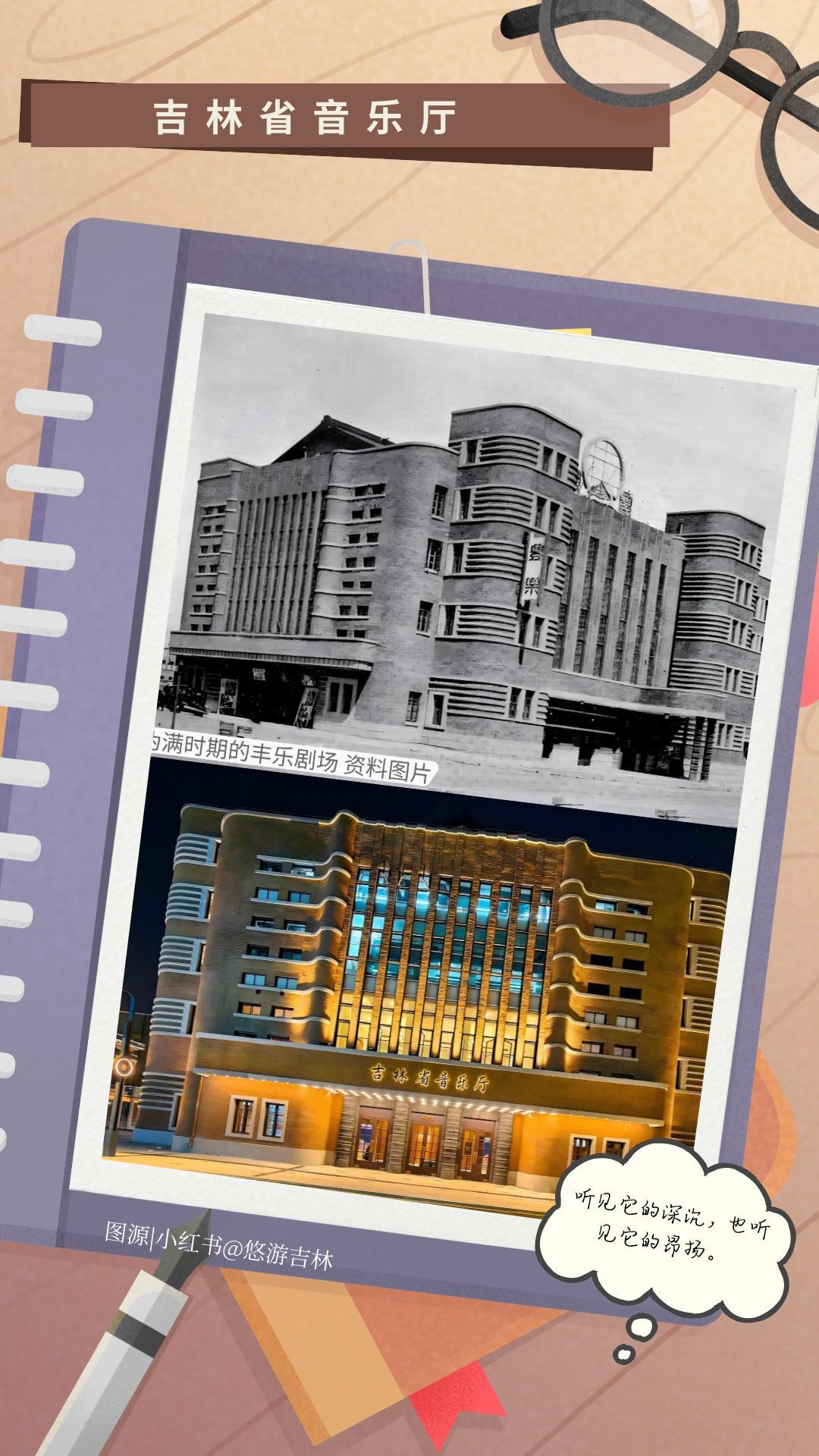 不远处的吉林省音乐厅,曾是伪满时期建设的“丰乐剧场”。岁月流转中几易其名,从“胜利电影院”到“春城剧场”,折射着不同时代的离合悲欢。只是站在大厅里,就已被那份厚重的故事感包裹。
