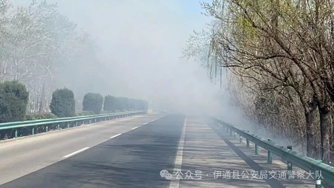 行驶至农村道路、城郊结合部、高速沿线等易烧荒区域,务必减速慢行,提前开近光灯和雾灯,保持安全车距,仔细观察路面和周边情况!