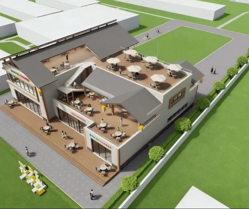 二楼为稻田景观咖啡厅,坐享一望无际的金色稻田,喝咖啡、赏稻浪,把田园风光尽收眼底。