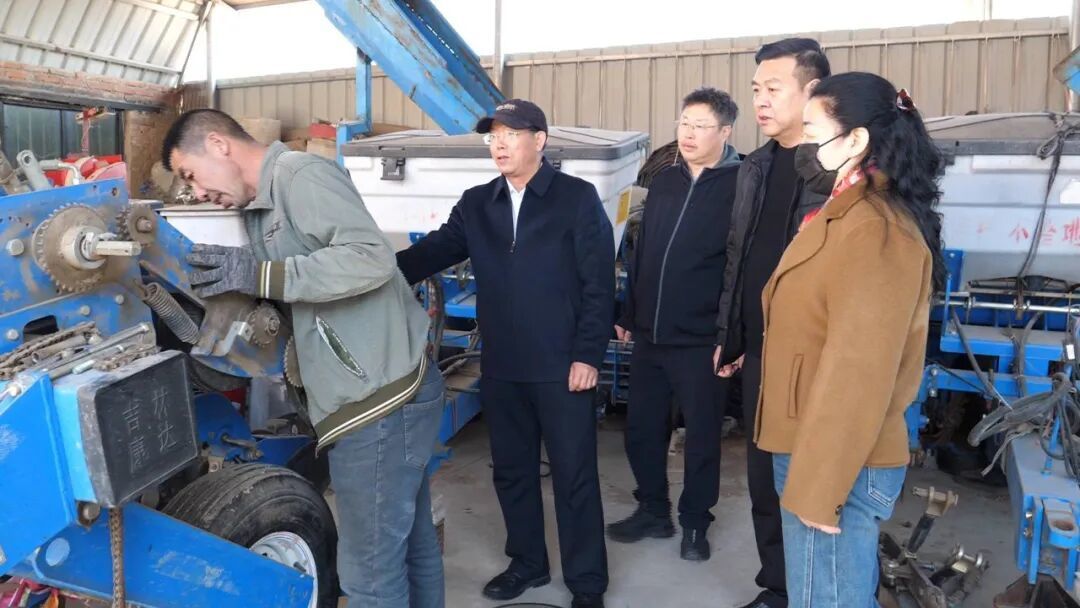 在茂林镇农林村福民农机专业合作社内,大型农机具整齐排列。市农机总站技术人员与当地农户、农机合作社负责人及种粮大户面对面交流,详细了解当前春耕备耕工作进展。