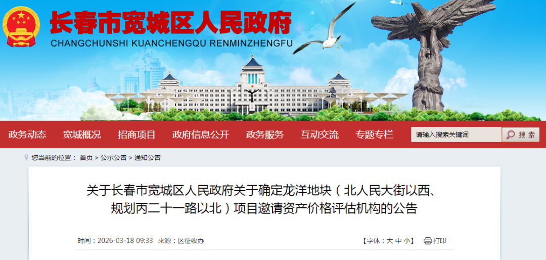 长春市宽城区人民政府发布关于确定龙洋地块(北人民大街以西、规划丙二十一路以北)项目征收范围的公告,详情如下: