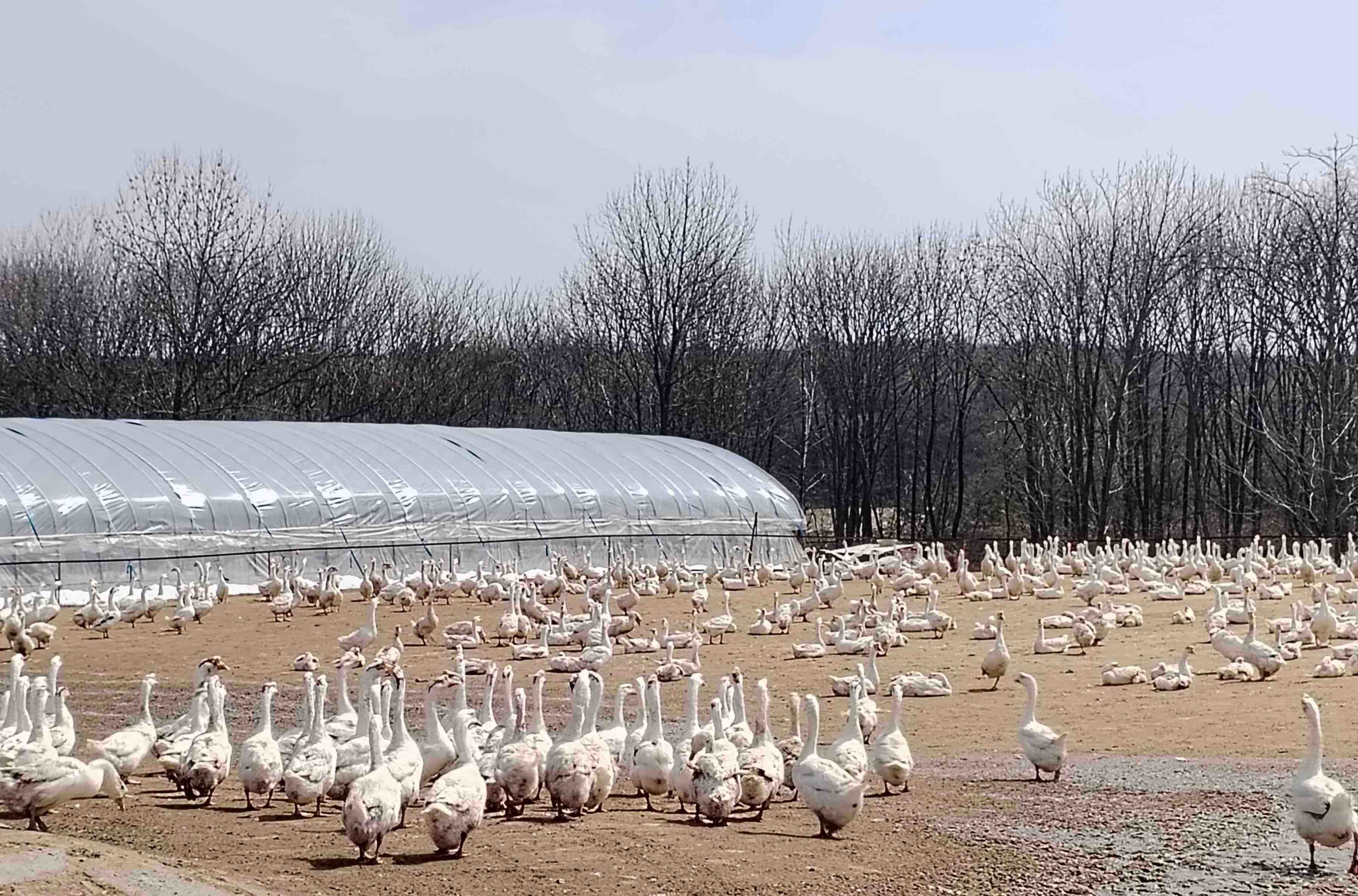 牛铭站在大棚边上,看着这群闹腾的家伙,嘴角带着笑。他是这片养殖基地的负责人,管着近万只种鹅。