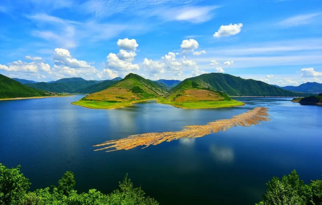 龙山湖景区作为G331白山段西起点的核心景区,地处鸭绿江中游,春时湖面解冻、波光粼粼,乘船游湖,看两岸青山叠翠、山花遍野,远眺中朝边境田园风光,清风拂面,心旷神怡。湖畔的三道沟渔猎文化小镇,春日里渔舟唱晚、炊烟袅袅,可体验原生态渔猎文化,品尝柴火炖江鱼等春日美味,感受边境乡村的质朴烟火。