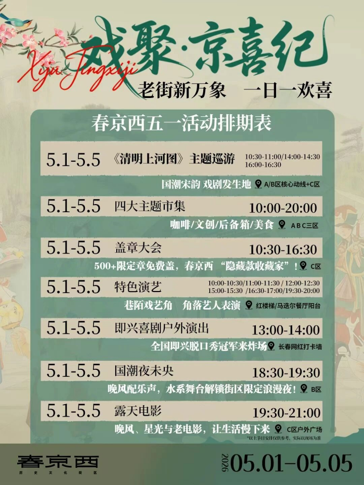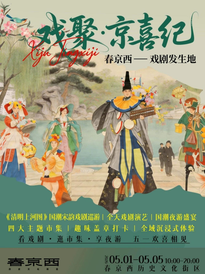 这个五一,春京西历史文化街区将通过戏剧与国潮的创意融合,让历史街巷焕发全新活力。活动所有演艺内容均可免费观看,市集自由逛摊,旨在为市民提供一个兼具文化内涵与休闲趣味的假期好去处。欢迎广大市民前来,在百年街巷中,遇见一场不期而遇的“京喜”。