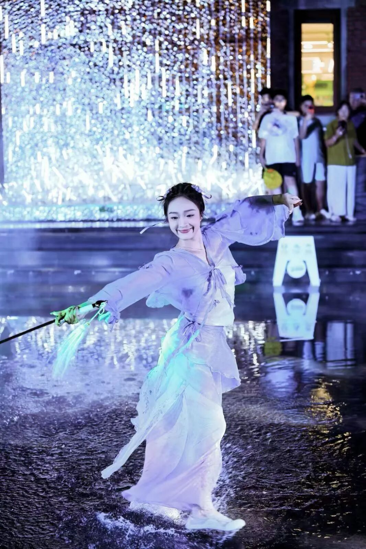 入夜后,活动氛围感进一步拉升。每晚18:30起,水系广场将有国风水舞秀与乐队驻唱。随后,C区广场将放映国风影片、经典动画等露天电影,打造松弛的夜间休闲场景。